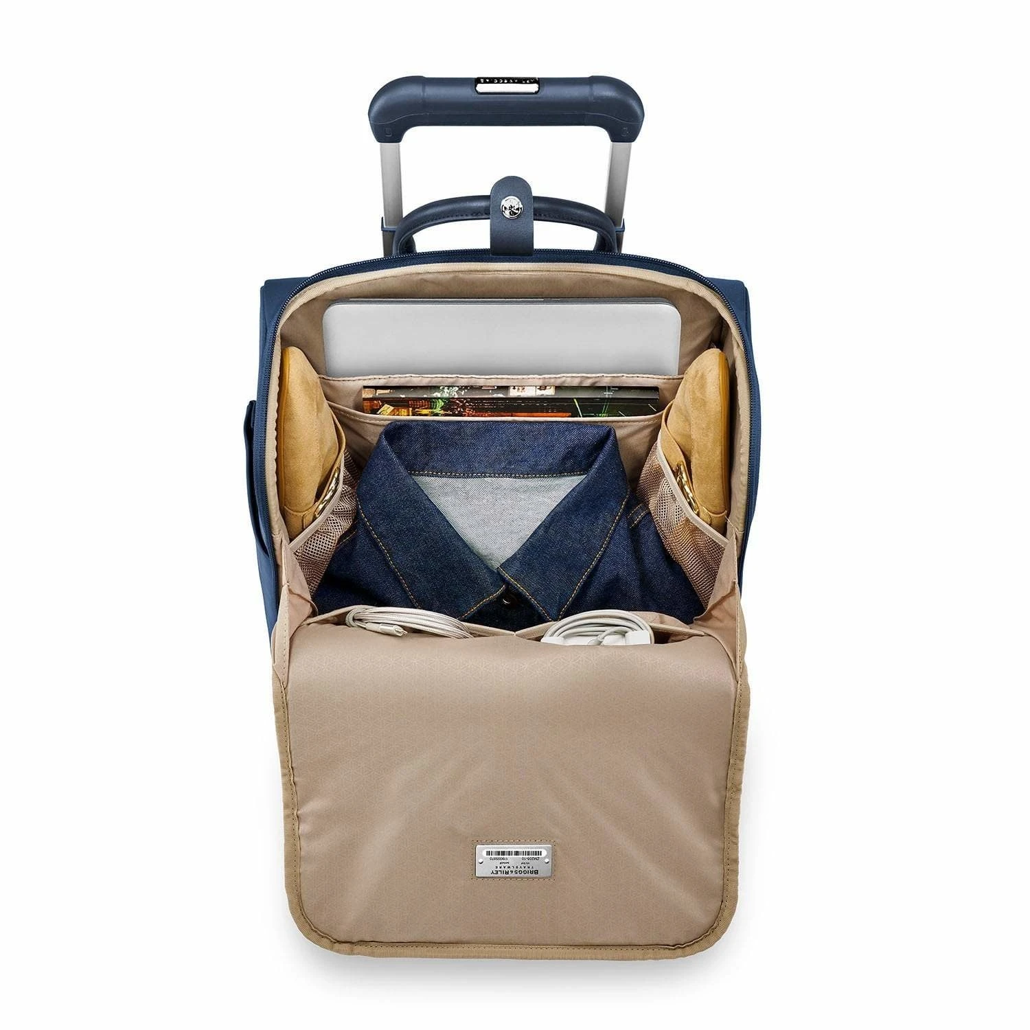 - Interlocking handle system allows bag to stack atop any Briggs & Riley UprightÆ or Spinner for seamless transportation of two bags as one