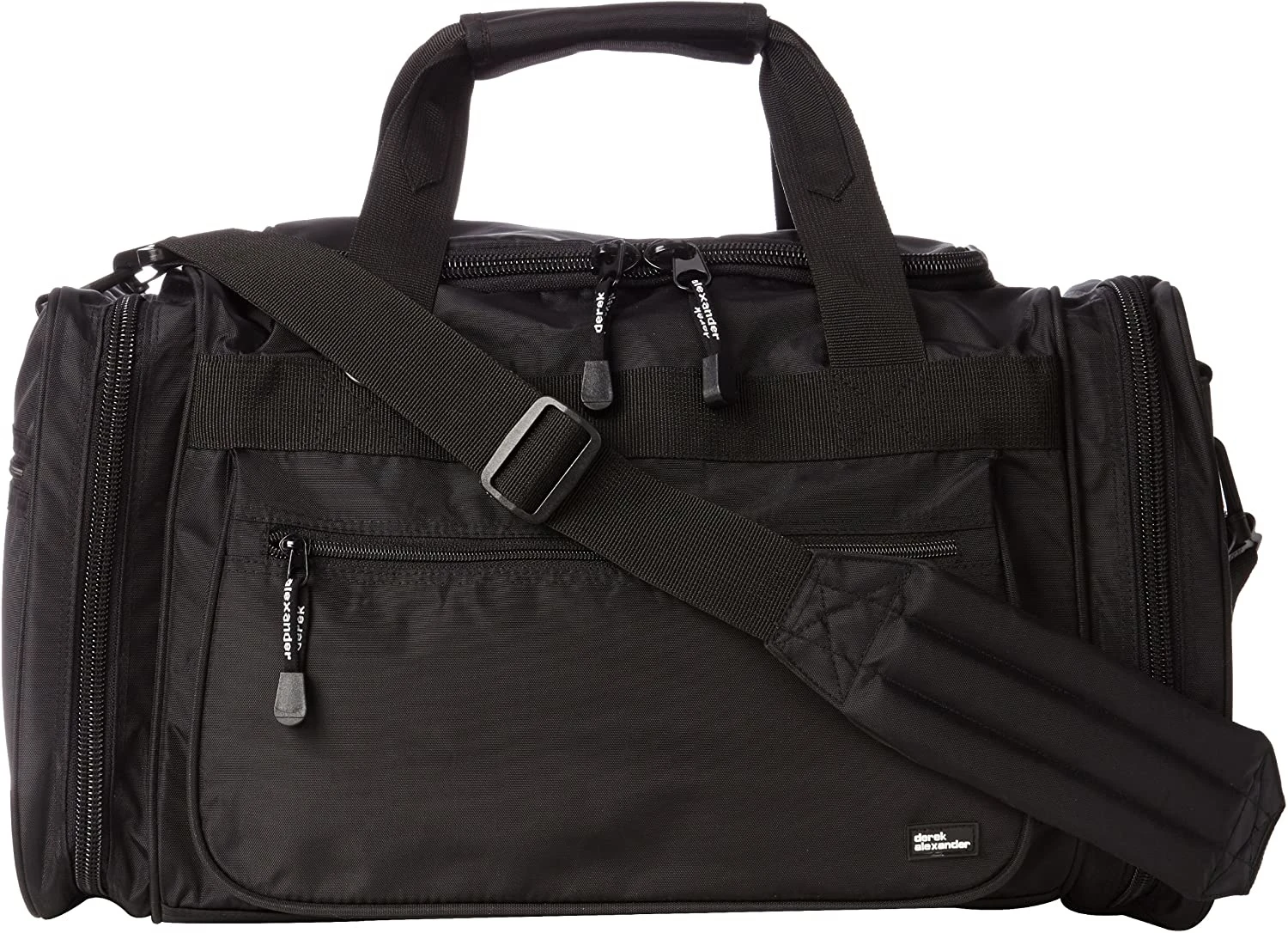 - The left hand side of this duffle opens up to reveal a large mesh zippered pocket, and three sleeve pockets with elastic at the top for keeping things secured. On the outside there is a zippered pocket for additional storage.