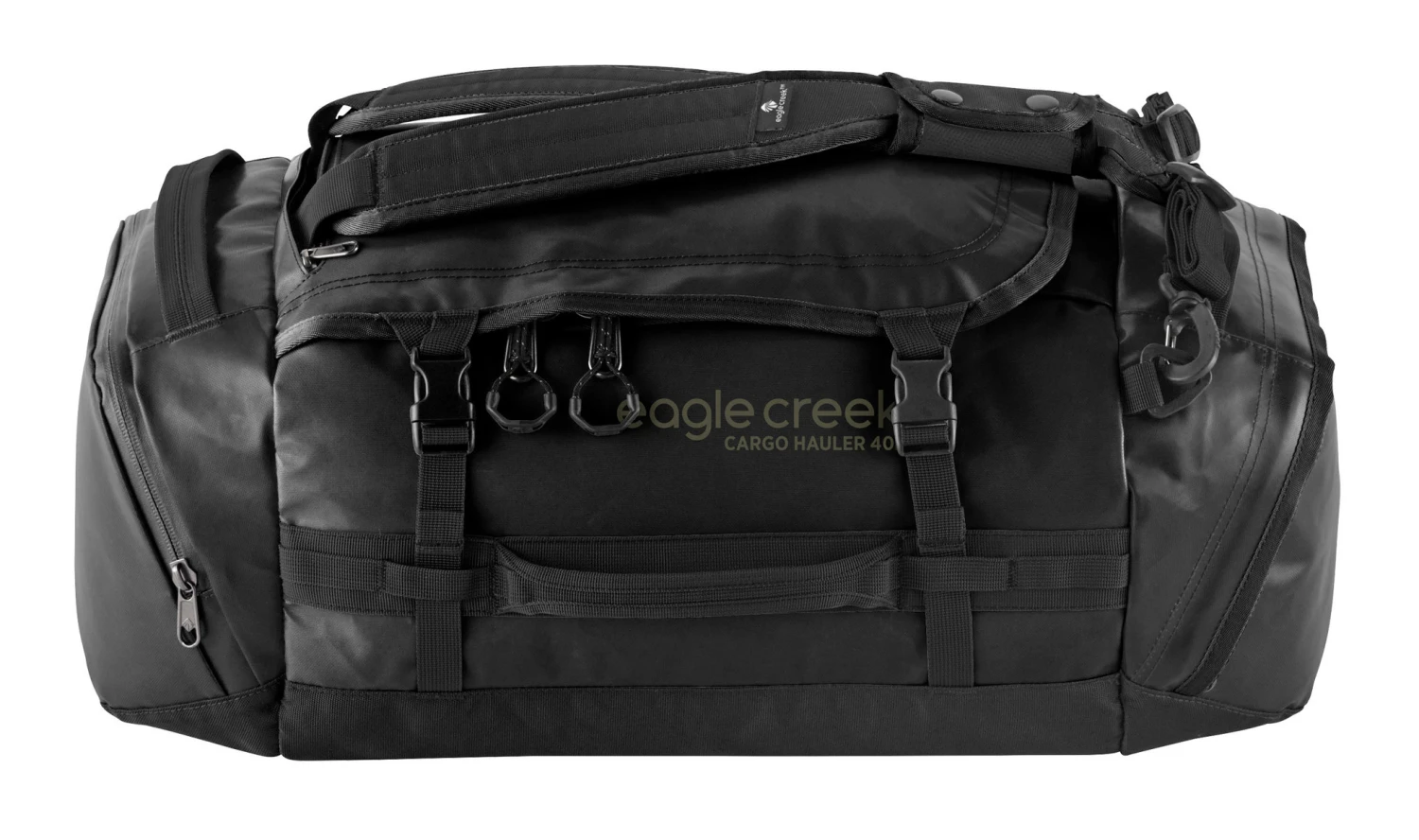 Be ready for all kinds of weather with the large and durable Eagle Creek™ 90L Cargo Hauler Duffel. Its wide opening provides easy access to the roomy main compartment and the hidden backpack straps in the back zippered pocket untuck for hands-free travel. The bag conveniently folds into its front zippered compartment for compact storage. This giant duffel is for long trips or when you need to haul lots of gear.