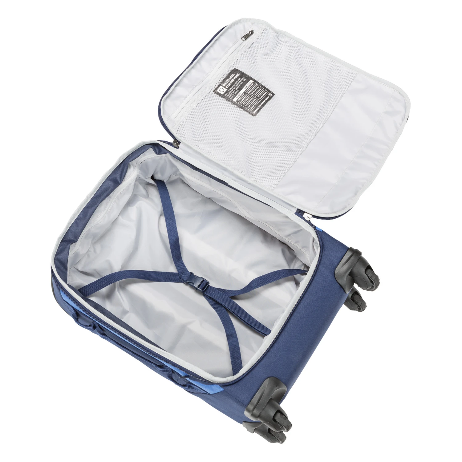 A sustainable 4-wheel bag that is designed to fit in even the smallest of overheads. Ready for your next international adventure, the Expanse™ 4-Wheel International Carry On features an expansion zipper for added storage, weather resistant and 100% recycled fabrics to protect your gear, and built-in attachments for your favorite Pack-It™ organizers.