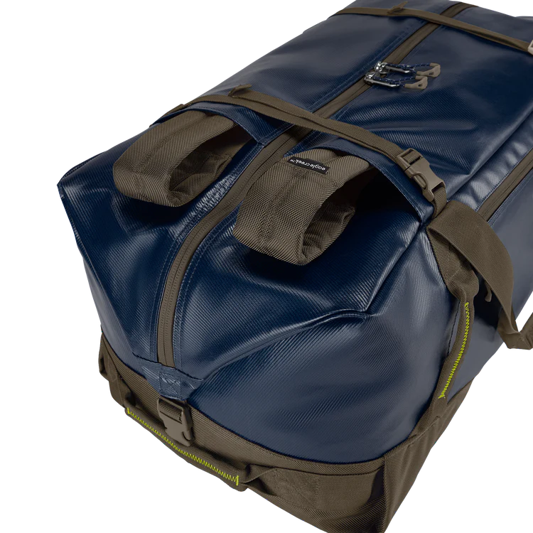 Big adventures require lots of gear. This ultra-tough duffel has a wide mouth opening and water-resistant materials, so you can bring everything you need anywhere you go. With versatility of tuck away backpack straps and durability of 100% Recycled 900D Poly TPU, we promise to keep designing gear that`s just as good for you as it is for the planet.