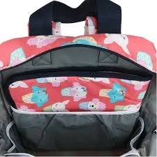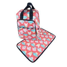 Zip main closure, Top handles with a 3.5in (8.89cm) drop, Adjustable padded shoulder straps, Large exterior front pocket with zip closure, Interior of front zip pocket features one open mesh pocket and two open cell phone pockets, Exterior front pocket with magnetic snap closure, Two exterior side open pockets, Interior of main compartment feature large back wall open pocket, two interior side wall open pockets, and two interior front wall open mesh pockets, Includes matching baby changing pad, plastic hardware. Measures 16H x 12.5W x 5.75D in.