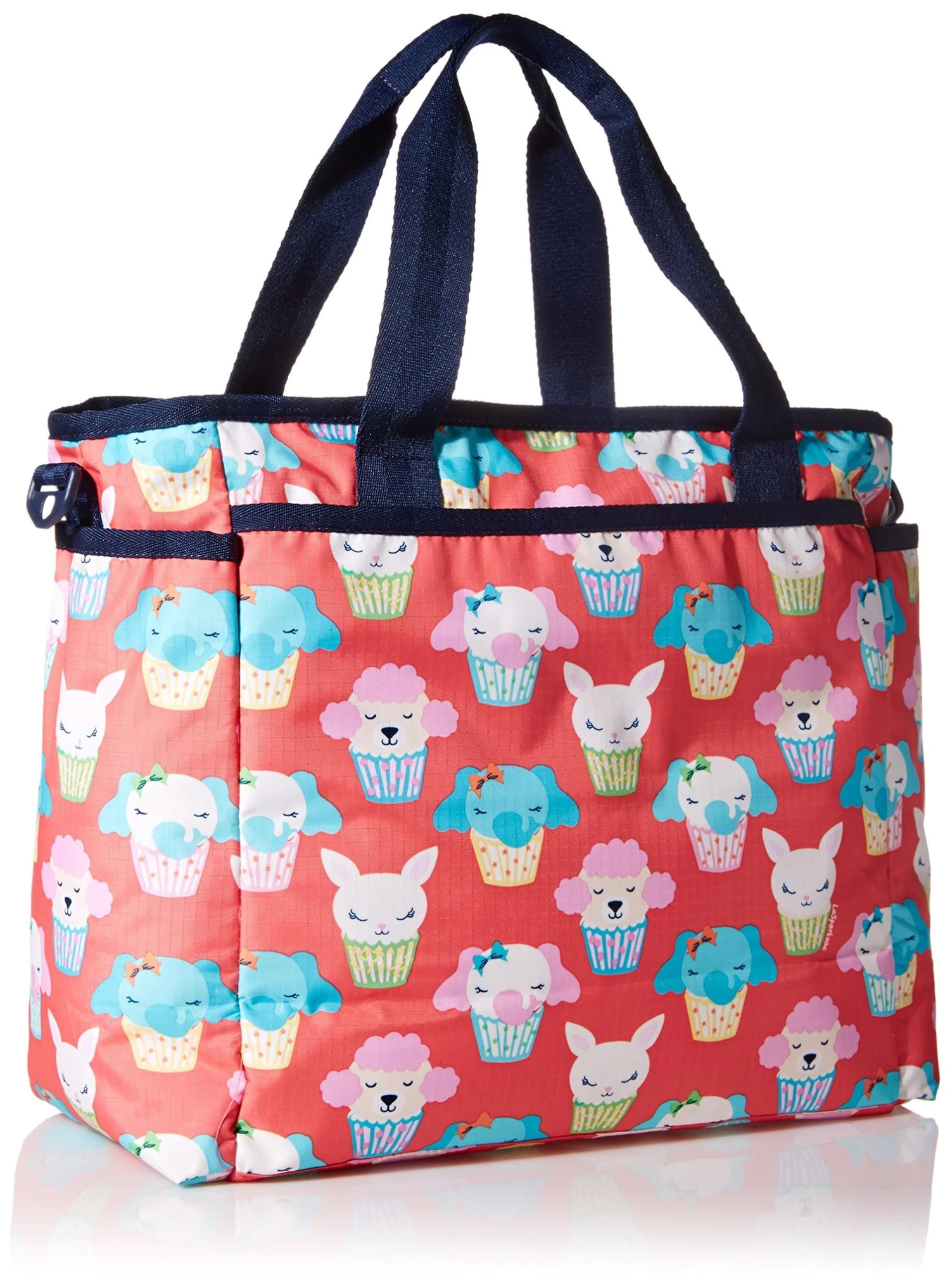 - Side stroller straps. Top handles, 11″ drop.