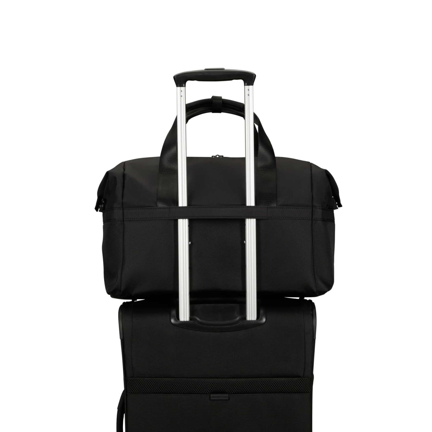 - Strap on back panel fits over most suitcase pull-handles so the bag can sit securely on top for hassle-free travel.