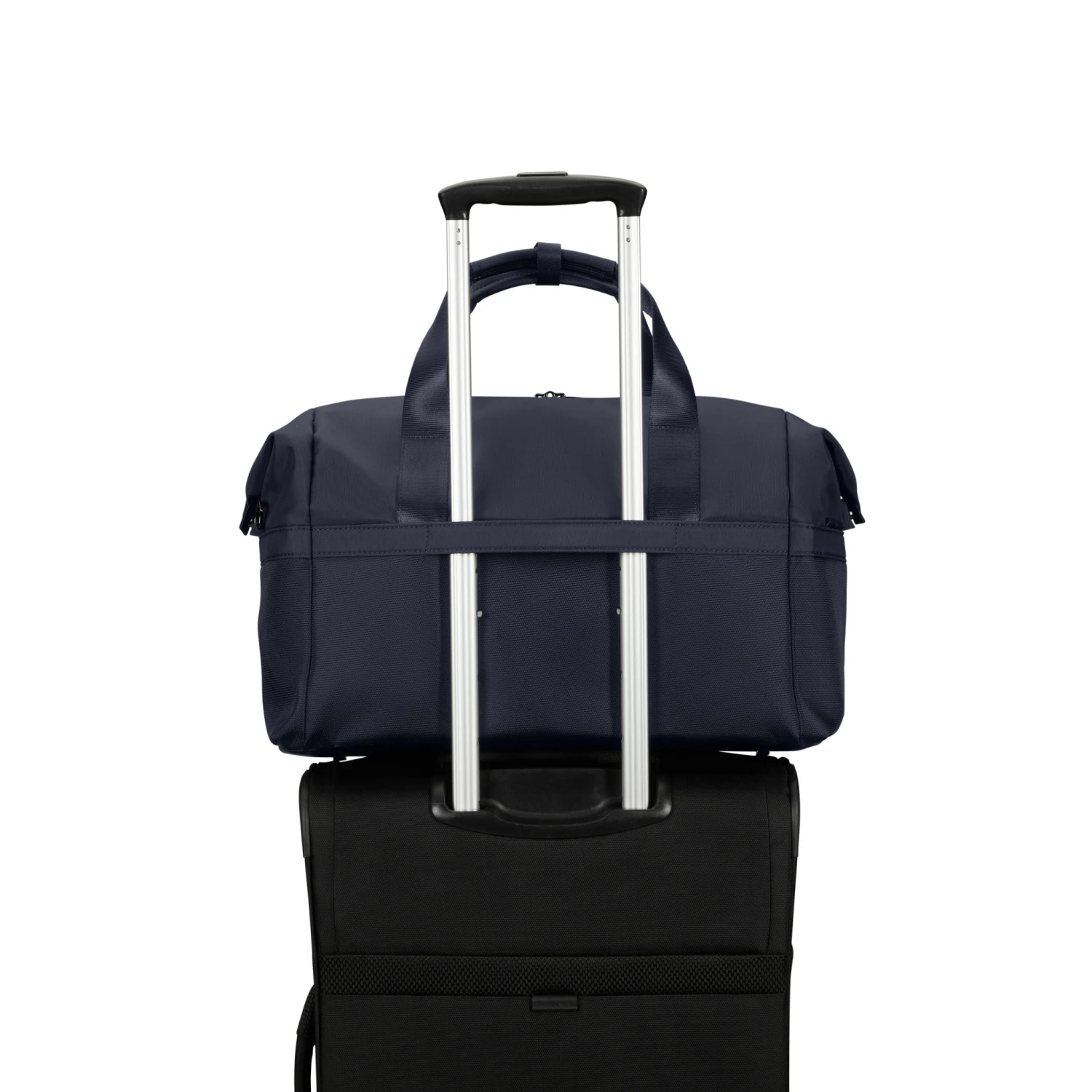 - Strap on back panel fits over most suitcase pull-handles so the bag can sit securely on top for hassle-free travel.