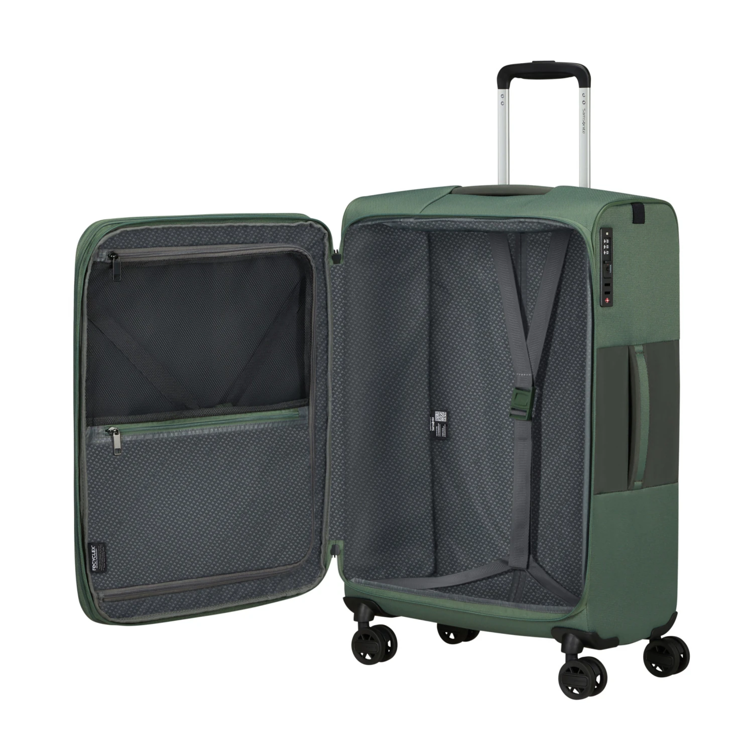 - Four dual, airflow Spinner wheels so you can easily roll an upright case.