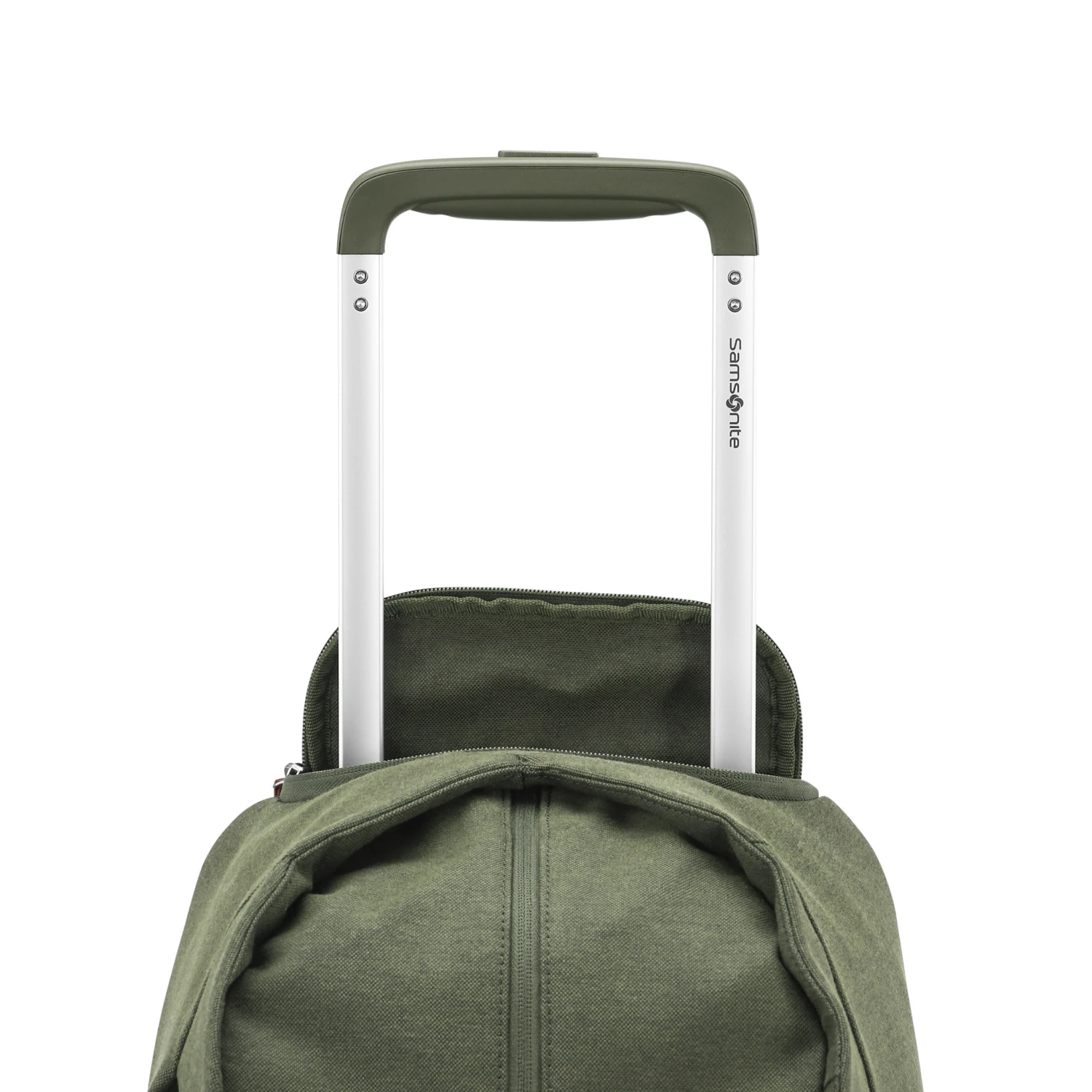 - Pull handle stores away in zippered compartment when not in use